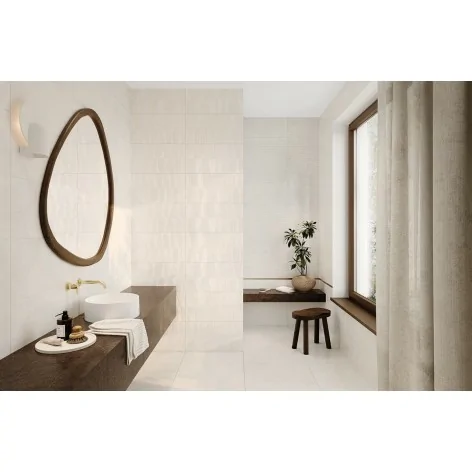 LINVA od Ceramiki DOMINO (Tubądzin) została zaprojektowana jako odpowiedź na potrzeby nowoczesnych, jasnych i spokojnych łazienek, w których pierwsze skrzypce gra światło, faktura i subtelna architektura powierzchni. To kolekcja bardzo „czysta” wizualnie, ale absolutnie nie płaska – jej siła tkwi w delikatnych strukturach, rytmie i miękkiej grze cieni. LINVA idealnie wpisuje się w stylistykę japandi, soft minimalism, modern spa oraz wnętrza inspirowane naturalnymi tkaninami, piaskiem i wapieniem.